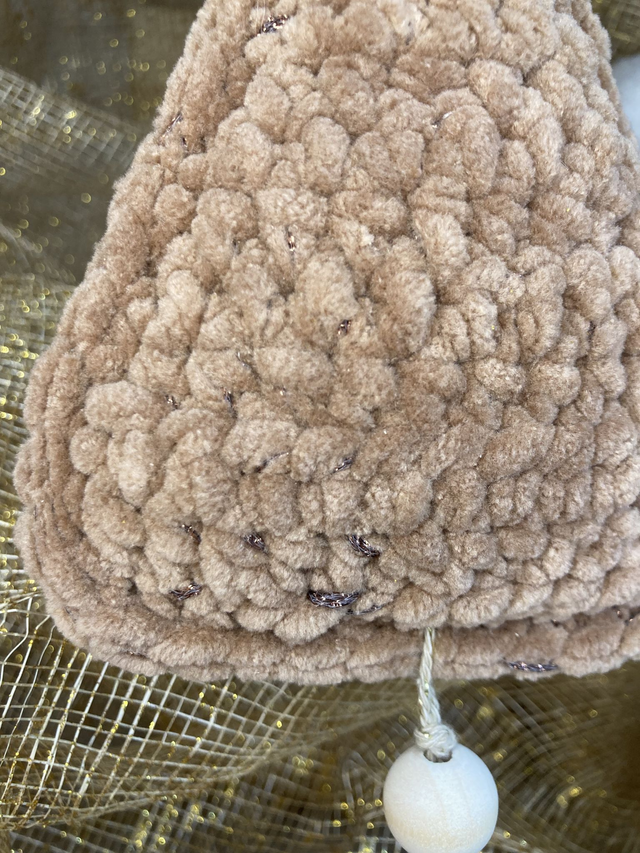 Sapin: Laine chenille (acrylique) et fil lurex marron